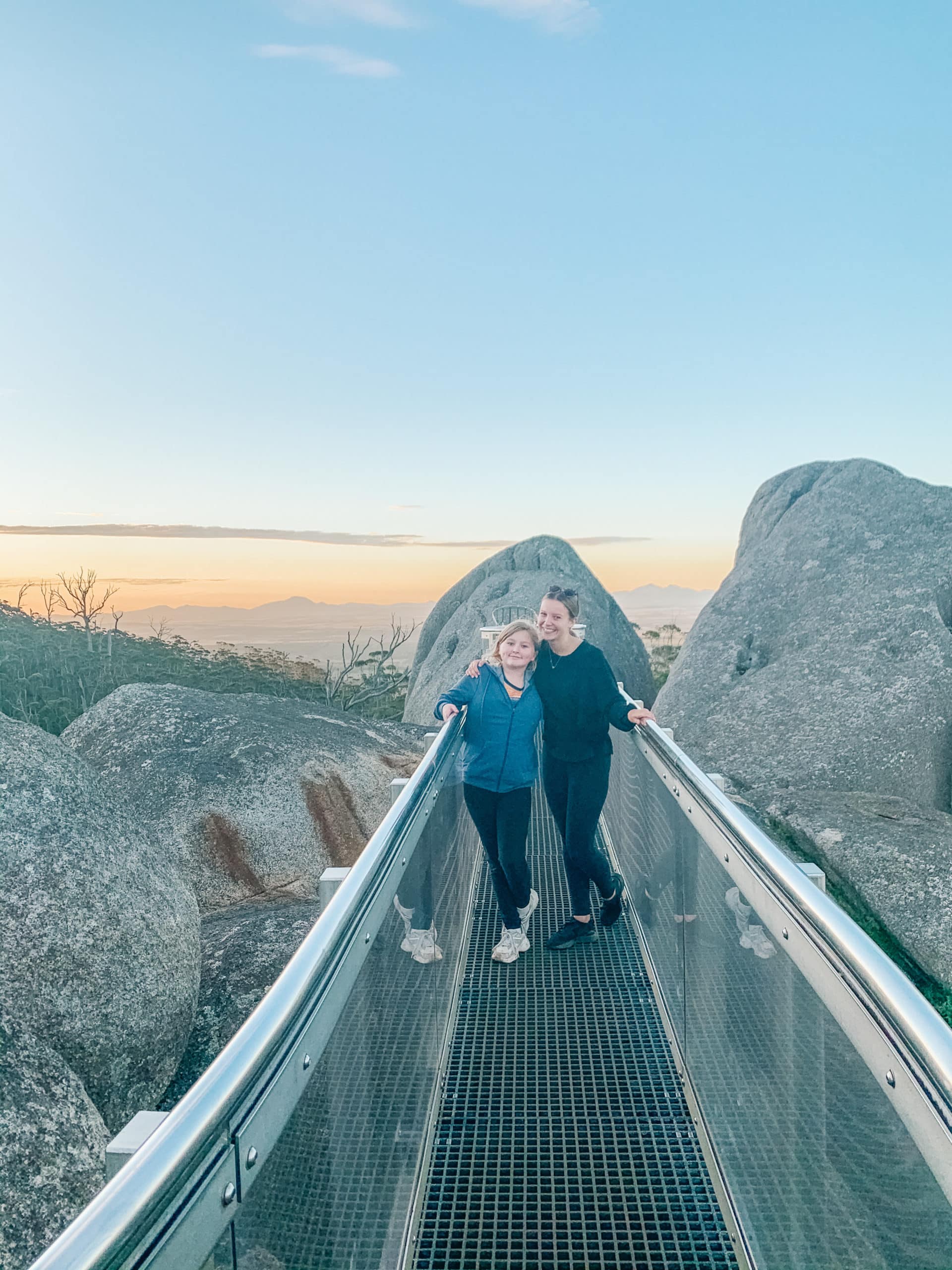 When I told everyone I was heading down south to Albany, the most common recommendation I received was to climb to the Granite Skywalk atop Castle Rock in the Porongurup National Park. After looking at the most amazing drone pictures online, I decided I just HAD to go during sunset. My Uncle Paul and cousin Millie didn’t need much convincing to come along with me. Even though Millie had completed the walk exactly one year prior, to the day. The night before we were set to complete the hike, she excitedly packed her school bag full of exercise clothes, snacks and torches. We were very well prepared.