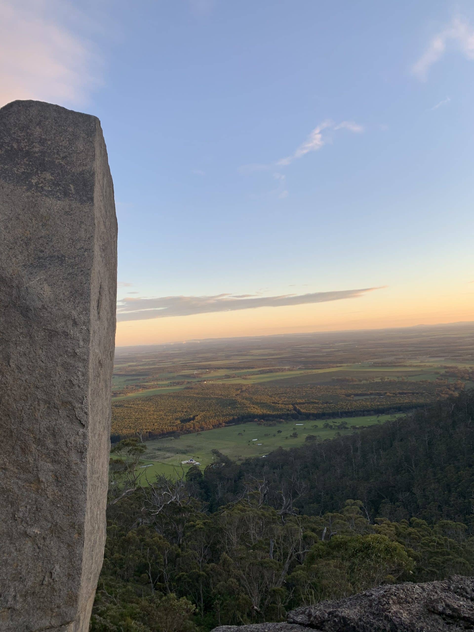 After we’d been climbing for about an hour, we began to notice the trees thinning out and huge granite boulders standing in their place. Only a few hundred metres from the top, there is a beautiful look out over the forest and farms. We stopped here to enjoy the view and some of the snacks Millie had packed for us. There were only a handful of obstacles between us and the skywalk now. And the sun was beginning to set. Buckle up for the best bit.